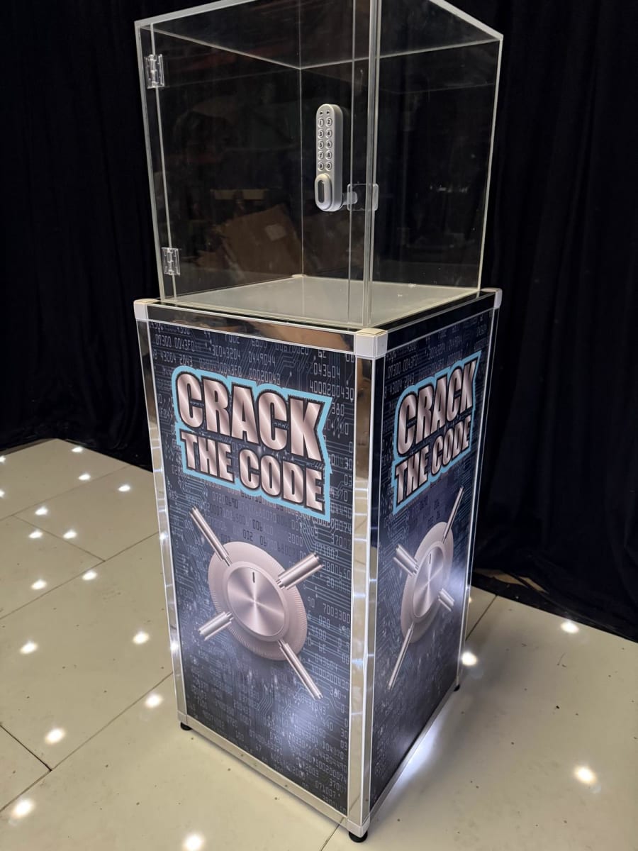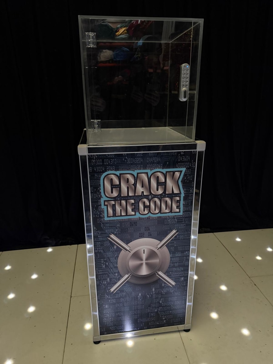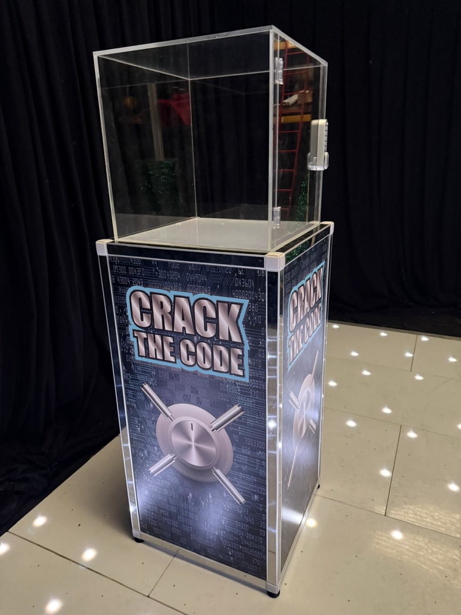 Looking for an engaging and interactive way to captivate your audience at exhibitions or spice up your office parties? The Safe Cracker/Crack the Code is the perfect solution to add excitement and anticipation to any event. This innovative game challenges participants to crack a four-digit code to unveil delightful prizes hidden inside a sleek, transparent perspex box.