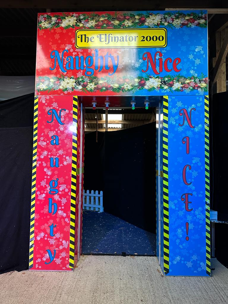 This is perfect for Children's events. It can come with an ELF(staff member) or without an ELF. When the children walk through ever the green light will show that means you have been nice or the red light will show that means you have been naughty.